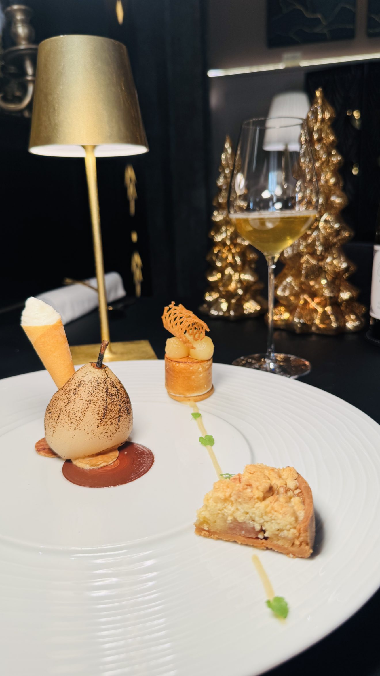 Avec « la poire et le miel en trois versions », le chef signe un dessert de haute lisibilité, à la fois érudit et profondément sensoriel. La poire Rocha, choisie pour sa tenue et sa droiture aromatique, devient ici le fil conducteur d’un triptyque où tradition et interprétation contemporaine dialoguent avec finesse.