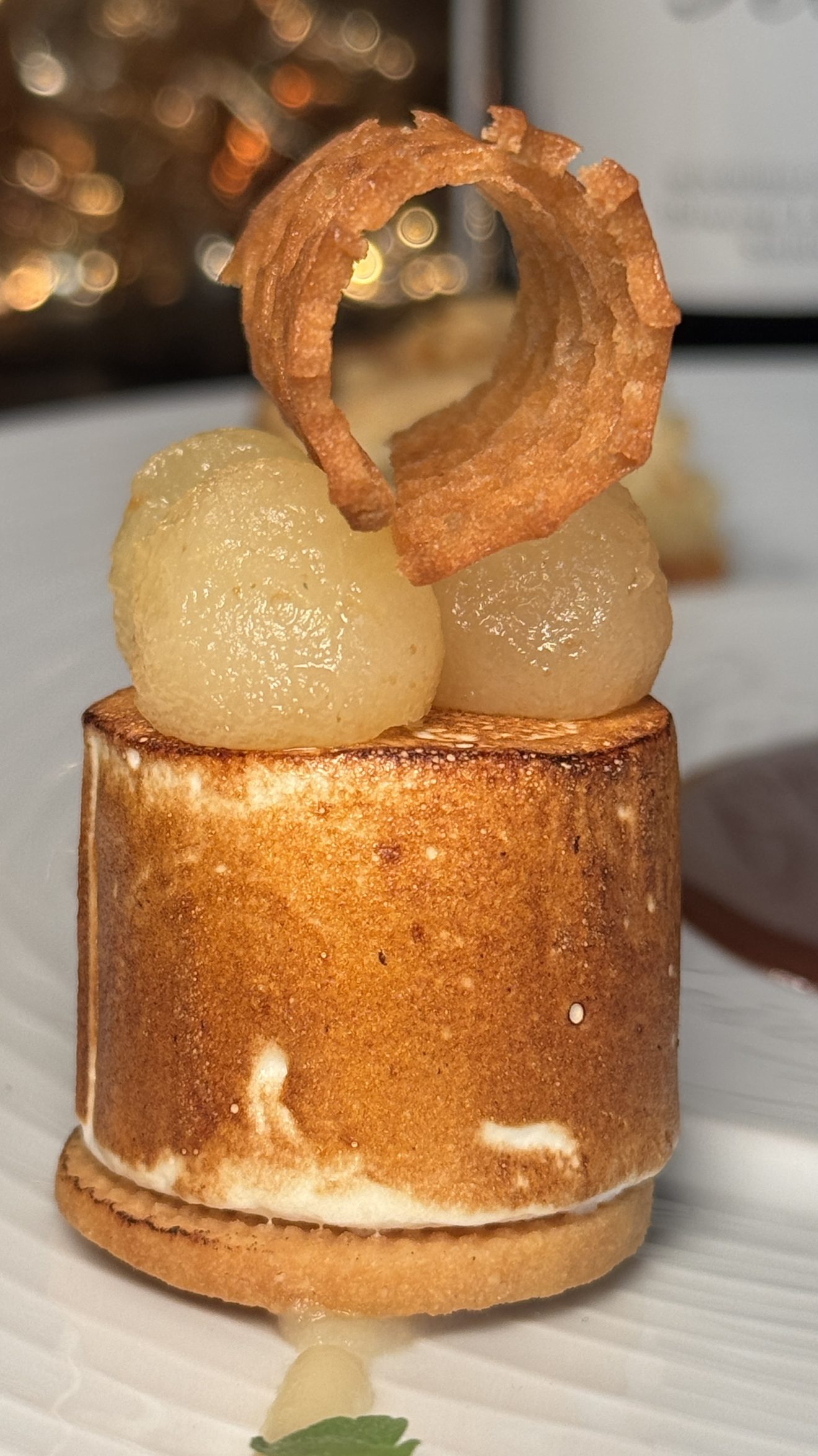 Enfin, la version norvégienne « Mylord » convoque l’héritage d’Escoffier dans une lecture contemporaine. Sorbet poire, glace vanille, billes de poires pochées au miel et à la vanille s’articulent autour d’une structure croustillante et aérienne, entre sablé et tuile cylindrique. La meringue italienne, légère et satinée, enveloppe l’ensemble sans lourdeur, créant un jeu de températures et de textures d’une grande élégance.